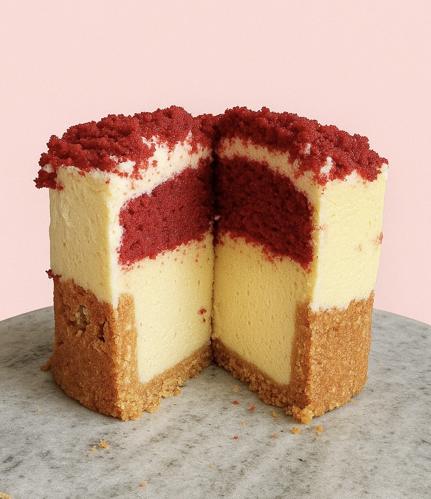 Indulge in the Red Velvet Cheesecake Bento by Simply in Season, a decadent dessert for 2–4 people. Measuring approximately 10 cm in diameter and 10 cm in height, this treat combines a rich baked cheesecake base with a velvety red velvet cake layer, finished with smooth, dreamy cream cheese icing. Perfect for gifting, sharing, or a luxurious personal treat, it’s a match made in dessert heaven.
