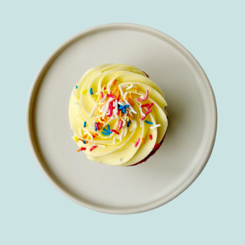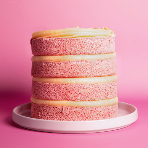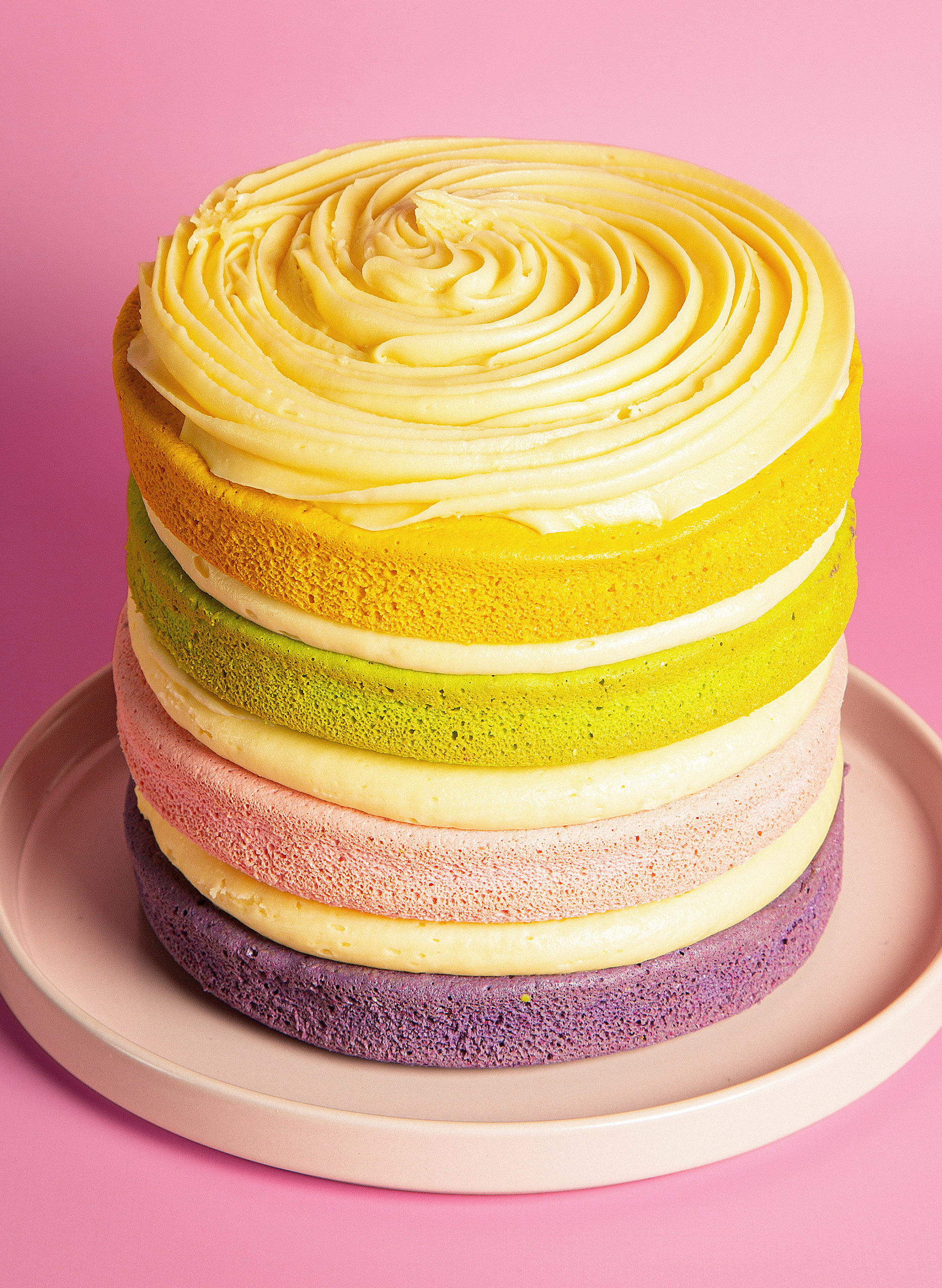 Our Rainbow Velvet Cake features four layers of soft, brightly coloured velvet cake, stacked with delicious cream cheese frosting.