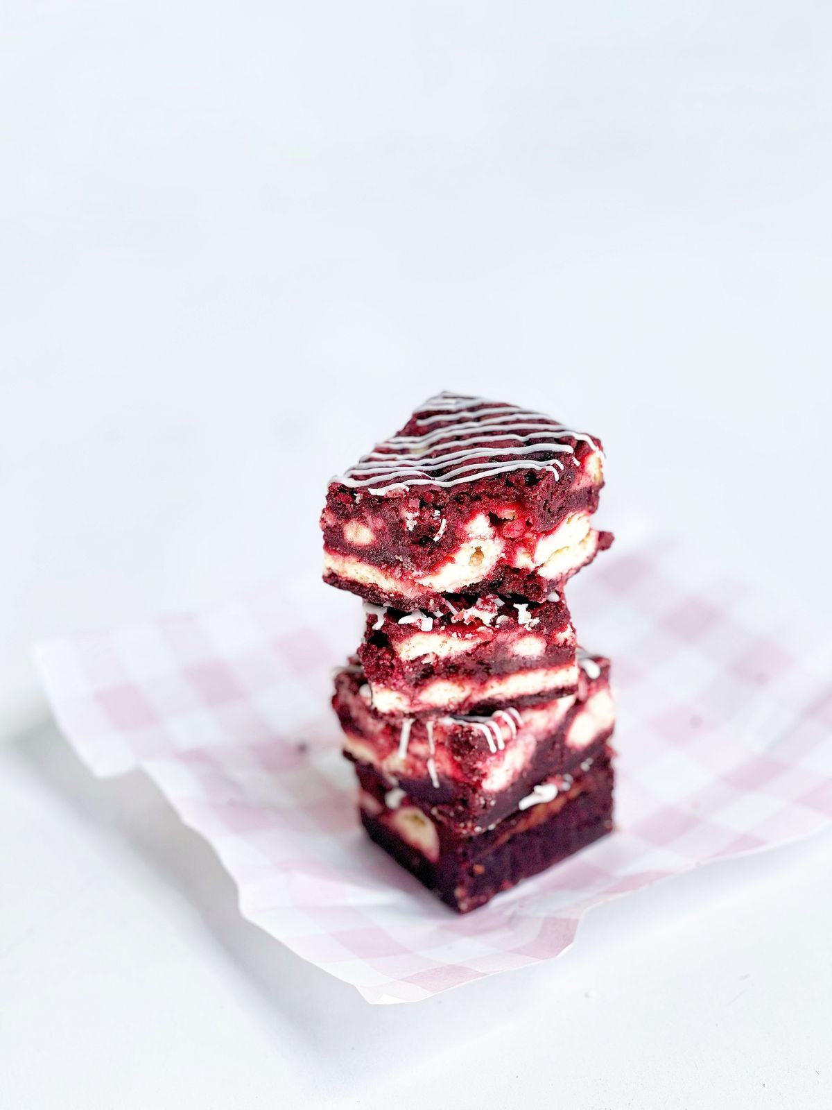Indulge in the rich, decadent flavour of Red Velvet Cheesecake Brownies by Simply in Season. Each box contains 4 handcrafted brownies, measuring 5cm x 5cm, combining moist red velvet cake with creamy cheesecake swirls for the perfect bite-sized treat. Ideal for gifting, dessert tables, or a sweet indulgence, these brownies are a deliciously luxurious treat for any occasion.
